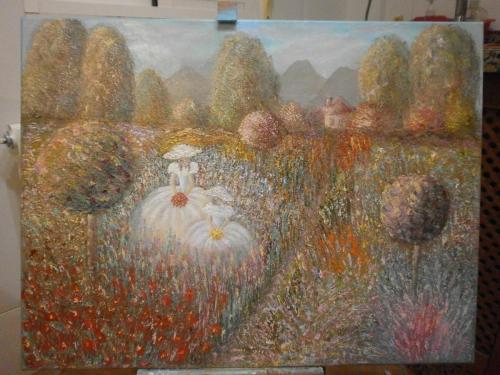 Я вот никогда не рисовала, а тут 2 года назад "вставило", стала искать, что и как, съездила аж в Индию на неделю семинара рисования маслом. Впервые взяла кисточки в руки тогда. Но после как-то не складывалось продолжить, 2 года ни прикосалась к этому, но тут у мамы юбилей был, хотелось чем-то удивить, нарисовала пару картирнок уже сама по себе, как с чистого листа. Мама была довольна, висит в центральном месте дома, гости внимание обращают среди множества картин профи, когда узнают, что нерисующая ранее дочь дарила, замирают в неверянии. Просто хобби... Ну и иногда прикалываю себя и дитя, лепя на лоб всяко-разно и совершая иные подобные шалости :lol: ой, вставила промежуточную версию картинки первой, а уже нет доступа на изменения... и собак там "в процессе", ну вообщем как-то так, в итоге мне чуть больше нравится7 баллов