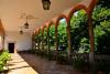 Усадьба и Сады Альфабия. По дороге в Сольер (Soller), в местечке Буньола (Bunyola) у подножия гор Сьера де Трамонтана (Sierra de Tramuntana) уютно расположились сады и усадьба Альфабия (Alfàbia). История. Первые упоминания об усадьбе Альфабия (Alfàbia), как о центре по производству оливкового масла появляются в арабских источниках. С этим местом связана также легенда, что один арабский дворянин по имени Бен Абет (Ben Abet) перешел на сторону завоевателя Майорки короля Хайме I (Jaime I) и принял христианство, взяв себе новую фамилию с арабскими корнями Бенасер (Bennásser). Правда это или нет, доподлинно уже ни кто не знает, но первым владельцем усадьбы Альфабия являлся Джоан Бенасер (Joan Bennásser). С тех пор усадьба много раз перестраивалась и реформировалась. Самым значительным изменениям усадьба подверглась в ХVIII веке, когда она приобрела элементы модного в то время стиля барокко. Во время этой реформы была значительно увеличена площадь дома, получившего новый формат и оформление, но сохранившего свою первозданность. В своей книге «Хроника путешествия её Королевского величества королевы Изабелы II (Isabel II) на Балеарские острова», Антонио Флорес (Antonio Flores), хроникер и историк королевского двора, который посетил вместе с королевой в 1860 году усадьбу Альфабия, написал: «Вход в виллу Альфабия выполнен превосходно, но выход в сад с противоположной стороны усадьбы, еще более замечателен. Войдя в дом, через главный вход, поражаешься правильностью планировки, и обращаешь внимание на галерею, которая плавно выходит из дома и простирается по всему саду, поглощается и растворяется между пейзажем, более разнообразным и красивым, чем может представить человеческое воображение. Кажется, что природа и искусство работают одной рукой. Никто не знает, где начинается сад, и где он заканчивается и начинается горная цепь, все это кажется непрерывным продолжением друг друга, они словно слились в одно целое». Сад. По лестнице расположенной с левой стороны от дома обрамленной пальмами и украшенной скульптурами львов поднимаешься к источнику воды. Далее путь проходит через особую аллею с 32 колонами и 24 фонтанами, расположенными по всей длине аллеи. Все фонтаны аллеи включаются кнопкой по типу шутейного фонтана в Петергофе. Любой желающий может включить фонтаны и устроить освежающий душ своим друзьям. Верхний сад был реконструирован в XIX веке в стиле английских регулярных садов. Эта часть сада называется «Сад королевы» (Jardinet de la Reina) по случаю пребывания в Альфабии королевы Изабелы II. Нижний сад представлен тропическими растениями и различными пальмами, растущими вокруг пруда с кувшинками. Здесь можно отдохнуть на скамейке, и насладиться великолепным пейзажем в тени пальм. Апельсиновый сад, растущий тут не декоративный, его плоды выращивают на продажу, а сок из них подают в кафе в саду. Такому великолепию природы сад обязан своим расположением, вблизи бегущего с гор источника воды, а также гор, которые его защищают от северных ветров. Усадьба. Стиль дома имеет римско-андалузские корни. Все постройки, после многочисленных реконструкций, представляют смешение из разных стилей: арабский, готика, ренессанс, барокко, романтизма, и даже английского рококо который является украшением некоторых комнат. Главный вход называется «Портал Фора», имеет огромные размеры, и с обеих сторон имеет два окна элли