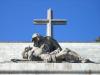 Долина Павших (Valle de los Caídos) - это большой монументальный комплекс, расположенный в горах Сиерра де Гуадаррама (Sierra de Guadarrama), что в 60 километрах от столицы Испании, рядом с монастырем Эль Эскориал (El Escorial). Территория комплекса занимает 1365 гектаров. Работы по возведению мемориала начались в 1940 году по приказу диктатора Франко. Главным архитектором проекта был назначен Педро Мугуруса, которого впоследствии, в 1950 году сменил на этом посту Диего Мендес. Одним из самых заметных сооружения является гигантский крест, который возвышается над всем комплексом. Его окружают скульптуры работы Авалоса, открывается огромной эспланадой. Строительство комплекса было завершено в 1958 году, а его официальное открытие состоялось 1 апреля 1959 года. Мемориал был воздвигнут в честь всех павших в годы Гражданской войны в Испании. Здесь похоронены около 40 тысяч националистов и солдат республиканской армии. Тем не менее Долина Падших неизбежно ассоциируется с режимом Франко, так как покойный генерал был похоронен внутри базилики. Каждый год мемориал посещают более полумиллиона туристов со всего мира. От въездных ворот комплекса живописная горная дорога выводит к подножию Святого Креста Долины Павших. Примерно на полпути между воротами и эспланадой путешественников поджидают четыре огромных монолитных колонны из гранита (высотой 11,5 м и диаметром 1,5 м каждая), которые были названы "Juanelos". Эти огромные столбы были вырублены еще в XV веке. Крест Построен на вершине скалистого скалы и известен как Риско де ла Нава (Risco de la Nava) на высоте 1400 метров над уровнем моря, Святой Крест в Долине павших является крупнейшим крестом в мире и по сей день. Этот огромный крест сделан из гранита, а его высота составляет 150 метров, включая основание. Его распятие сориентировано четко с севера на юг и имеет ширину 47 метров. С большого эспланады, расположенной под крестом до верхней части креста, расстояние составляет ровно 300 метров. У подножия крест окружают четыре колоссальные скульптуры, каждая высотой в 18 метров, которые были изготовлены Хуана де Бвалос (1911-2006) и изображают четырех евангелистов: - Святой Лука с быком. - Святой Иоанн с орлом. - Святой Марк со львом. - Матфей с человеком. Представьте себе на минуточку, общий вес креста с учетом его основания составляет около 200 тысяч тонн. Добраться до основания креста можно на фуникулере, который отправляется каждые 30 минут или или воспользовавшись весьма живописной пешеходной тропой. Базилика Главный вход в базилику расположен на восточной стороне в большой эспланаде, которая обладает общей площадью в 30 600 м ². Эспланада была выдолблена в скале и простирается на длину в 262 метра, а внутри ее расположились шесть часовен (по три с каждой стороны), посвященные Деве Марии. У подножия алтаря находятся могилы Франсиско Франко и Хосе Антонио Примо де Ривера, основателя испанской Фаланги. Купол имеет 40 метров в длину в диаметре и украшен мозаикой работы Сантьяго Падриса (Santiago Padrуs). В базилике проводятся ежедневные религиозные службы с 11:00 до 11:45. В глубине эспланады находится вход в крипту. Для строительства крипты пришлось вырубить и извлечь из скалы около 200.000 кубометров горной породы. Входная дверь в крипту, сделанная из бронзы, является произведением скульптора Карлоса Феррейры. Решетка, находящаяся за входной дверью, декорирована изо