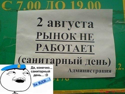 Из объяснительной. "... После обыска у самогонщицы Сидоровой я и сержант Красюк никак не могли найти входную дверь. Когда Красюк устал и уснул в туалете, дверь я все-таки нашел. Но вот зачем я принес эту дверь в наше отделение, не помню... " После корпоративной игры в пейнтбол начальник легко узнаваем, ведь на нем не только следы от краски, но и кровоподтеки от прикладов. Поздравляю с днем рождения, желаю тебе счастья, любви, красоты, денег побольше, ума, а все остальное у тебя есть ХХХ: Машину купил- не едет че- то. УУУ: За сколько купил? ХХХ: За 18 тыс. УУУ: Я за столько холодильник купил- он тоже не едет. Как хорошо было раньше берешь газетку и идешь в туалет. А сейчас прям как в экспедицию туда собираешься: ноутбук, iРаd, два мобильника Мужик с фотомоделью заходят в один из самых дорогих меховых магазинов. - Покажите даме вашу самую дорогую норковую шубу, - говорит мужик продавцу. Тот приносит прекрасную шубу из норки. Дама ее надевает. Здорово. - Эта шуба стоит 30 тысяч долларов, - говорит продавец. - Никаких проблем! Я выпишу сейчас чек. - Очень хорошо. Сегодня суббота. Вы можете забрать шубу в понедельник, после того, как чек будет подтвержден в банке. Мужик с дамой ушли. В понедельник он снова появляется в магазине. Увидев его, продавец вспыхнул: - Как вам не стыдно появляться здесь?! ! На вашем счету ничего нет! ! - Я лишь зашел поблагодарить вас за одну из лучших ночей в моей жизни...